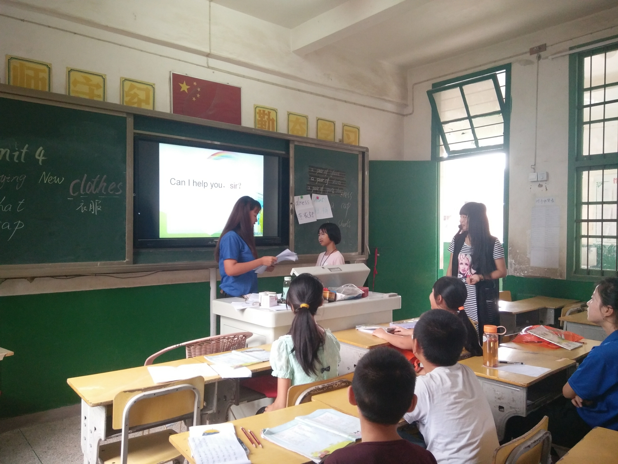 当天上午,汤坑小学石老师采用寓教于乐的教育方式,组织队员和孩子们一起上课。在课堂上,队员们跃跃欲试,积极参与游戏互动,与汤坑小学的学生进行PK赛的学习小游戏。同时,队员还与孩子们进行英语场景互动,进行英语口语交流,调动孩子们的积极性,拉近彼此间的距离。