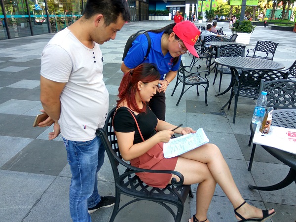 实践队员按照安排,有序地向来往游客介绍来意,向游客发放问卷调查,并耐心回答游客提问关于危险驾驶的相关问题。期间,队员们还向游客宣传学校,并发放学校招生简章。在队员们的宣传下,游客们对公众对危险驾驶的认知有所了解,对永利官网的认识更加深入,并对实践队的问卷调查活动表示肯定。
