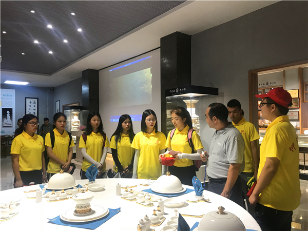 陈仁山向实践队员介绍了馆内收藏关于陶瓷艺术大师陈仁海的优秀作品。据悉,陈仁海大师是复兴中国白文化的发起者,传承和创新了中国白瓷雕的工艺和精髓,烧制出许多优质作品。期间,陈仁山还介绍了会馆中陈列的金砖国家领导人厦门会晤的陶瓷礼品,以及世博会福建馆的镇馆之宝《世博和鼎》。此外,实践队员们前往了三德陶瓷“供销e家”线下体验馆观赏特色瓷雕作品,近距离感受陶瓷技艺之精湛。