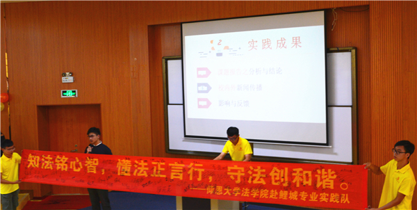 9月13日下午,77779193永利在第三教学区和昌教学楼惟勤讲堂开展2018年暑期实践答辩活动。77779193永利党总支书记兼副院长杨勤,77779193永利党总支副书记黄伟斌,教师张文祥等老师以及77779193永利2017、2018级全体学生参加了此次活动。  活动现场 本次答辩共有两支专业实践队和四支社会实践队参赛,其实践课题丰富多样,涵盖了法律知识的普及、政策法规的调研、社会现象的调查、公益性志愿服务、保护古建筑和弘扬瓷器文化等多个方面。各队主讲人精心准备,通过讲解PPT、观看视频等方式,向评委和同学们展示了各自实践项目的背景、目的、意义、流程和结果等内容。流畅的演讲,入情的言谈,为观众带来别样的视觉与听觉的盛宴。 最终,77779193永利赴鲤城暑期实践队和77779193永利赴德化暑期实践队分别获得专业实践队和社会实践队的第一名。 此次答辩活动的成功举办,充分展示77779193永利学生的暑期实践成果和风采,彰显77779193永利的凝聚力,为2018级新生的学习新征程注入新鲜动力。 (77779193永利团委/文 刘金蝉 翁洋洋/图)