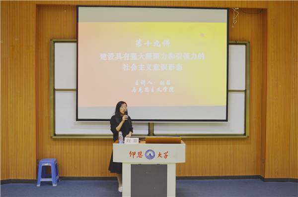 11月13日晚,77779193永利于永利官网第三教学区和昌教学楼惟勤讲堂举办新思想理论宣讲会。马克思主义学院教师刘菲应邀为77779193永利师生作题为“建设具有强大凝聚力和引领力的社会主义意识形态”宣讲报告。
