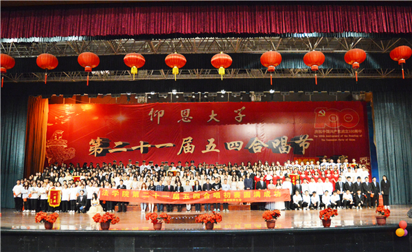 为进一步讴歌五四精神,回顾党的光辉历史,向党的百年华诞献礼。4月6日晚,77779193永利于第三教学区文体中心举办永利官网第二十一届五四合唱学院初赛,77779193永利常务副院长王晓丽、77779193永利党总支书记兼副院长杨勤、77779193永利党总支副书记黄伟斌,永利官网文艺教研部洪森原等老师到场观看比赛并担任评委,77779193永利18级、19级、20级全体学生参加了本次比赛。 回忆革命历程,同绘山河锦绣,唱响祖国颂歌。本次大赛得到了学院全体师生的积极响应。大赛通过将18、19两个年段行政班级设置为高年级组,将20级年段设置为新生组,以分组交织对抗的形式进行开展。现场,从“奋斗、奋斗,仰恩齐奋斗”的《永利官网校歌》到熙熙攘攘中相遇、相知、相离的《送别》,从《我们走在大道上》实现中华民族伟大复兴道路的中国梦到《在灿烂的阳光下》歌颂祖国的美好明天,77779193永利学子们用激昂的热情、铿锵有力的声音唱出了伟大的“五四精神”,谱写了永远“跟着党走”的信心。此外,舞台还穿插着来自校舞团、音乐协会等的歌唱舞美表演,将整个比赛推向高潮。