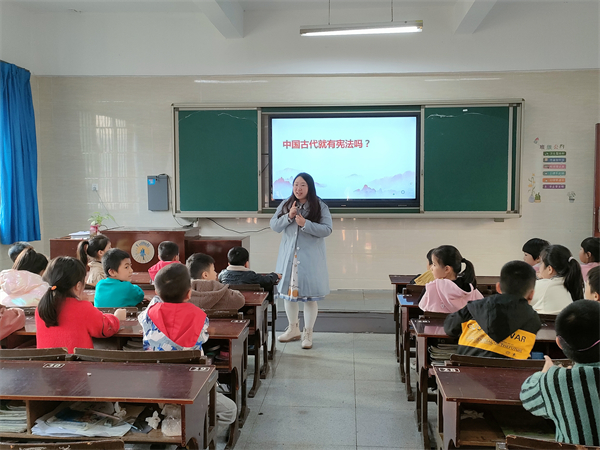 此次活动,围绕“法律驻我心,宪法伴我行”的主题展开。活动现场,陈琳从宣传群体实际出发点,依托通俗易懂的故事,借助多媒体PPT课件展示的方法,声情并茂地为低年级学生们科普了“什么是宪法”“为什么要有宪法”“我们要怎么维护宪法”。此外,现场氛围热烈,工作人员还以宪法知识抢答、观看相关视频、分发宣传手册的方式与孩子们开展了互动,这进一步增强孩子们对自身权益保护的理解,激发孩子们对宪法的学习兴趣。