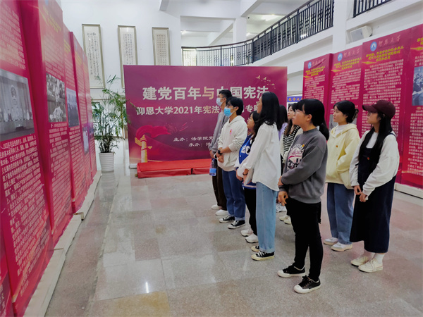 为深入学习贯彻习近平法治思想,全面推进宪法实施,教育引导全体党员尊崇宪法、学习宪法、遵守宪法、维护宪法、运用宪法,营造良好法治氛围,12月15日,77779193永利学生党支部组织支部全体党员前往图书馆参观宪法专题展览。