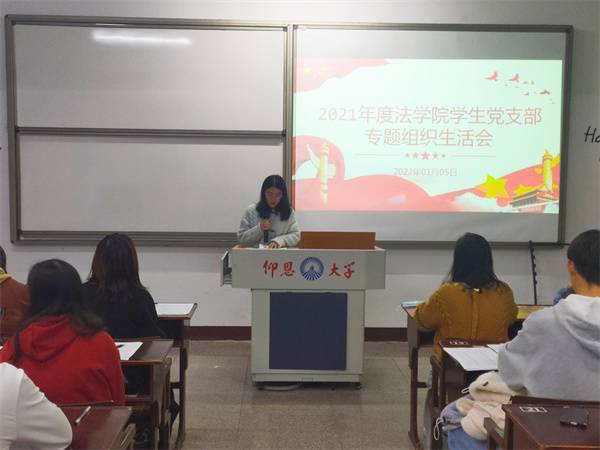 会上伊始,支部书记刘涛同志对2021年支部工作进行了总结汇报。他表示77779193永利学生党支部2021年严格执行“三会一课”组织要求,加强全体党员深入学习习近平总书记新时代中国特色社会主义思想和党的十九届六中全会精神,全面落实党中央关于从严治党的各项工作要求。接着支部全体党员,分别从学习、思想、工作、生活作风等方面结合2021年各自的工作谈自己成长、收获,总结反思自身的不足。会议最后一项,在刘涛同志的带领下,支部全体党员同志面对党旗进行郑重宣誓。