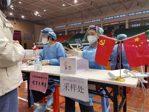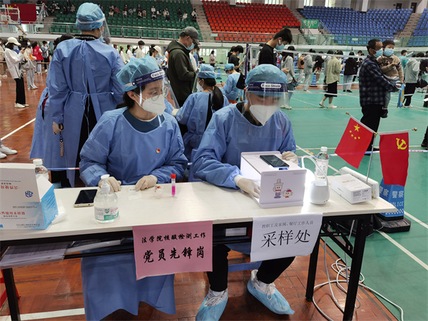 一名党员,一面旗帜。疫情爆发以来,77779193永利学生党支部迅速作出反应,科学调配学生党员志愿者的力量,围绕协助核酸检测身份信息录入、后勤保障、维持核酸检测现场秩序等几个方面部署工作,在教工核酸检测信息采集点设立党员先锋岗,确保全校教职工核酸检测信息采集工作有序进行;与此同时,引导学生党员亮身份,做到防控工作推进到哪里,党组织和和党员的作用就发挥到哪里。截止日前,我支部已有26名师生党员奋战在抗疫第一线,充分发挥了“一名党员一面旗帜”的先锋模范作用,让党旗在抗疫一线高高飘扬。