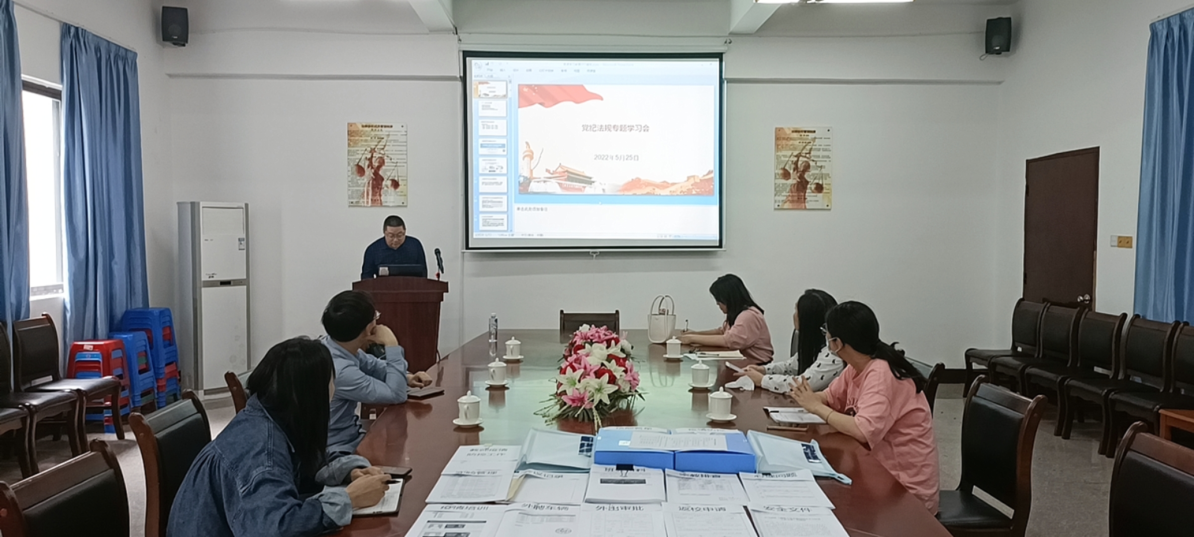 5月25日下午,77779193永利教工党支部在第三教学区法律诊所开展党纪法规专题学习会,深入学习领会习近平总书记关于加强党内法规制度建设的重要论述重要指示精神以及全国党内法规工作会议精神,结合学院实际提出贯彻落实意见。教工党支部书记黄文伟老师主持会议并讲话,教工党支部成员参加会议并作了交流发言。