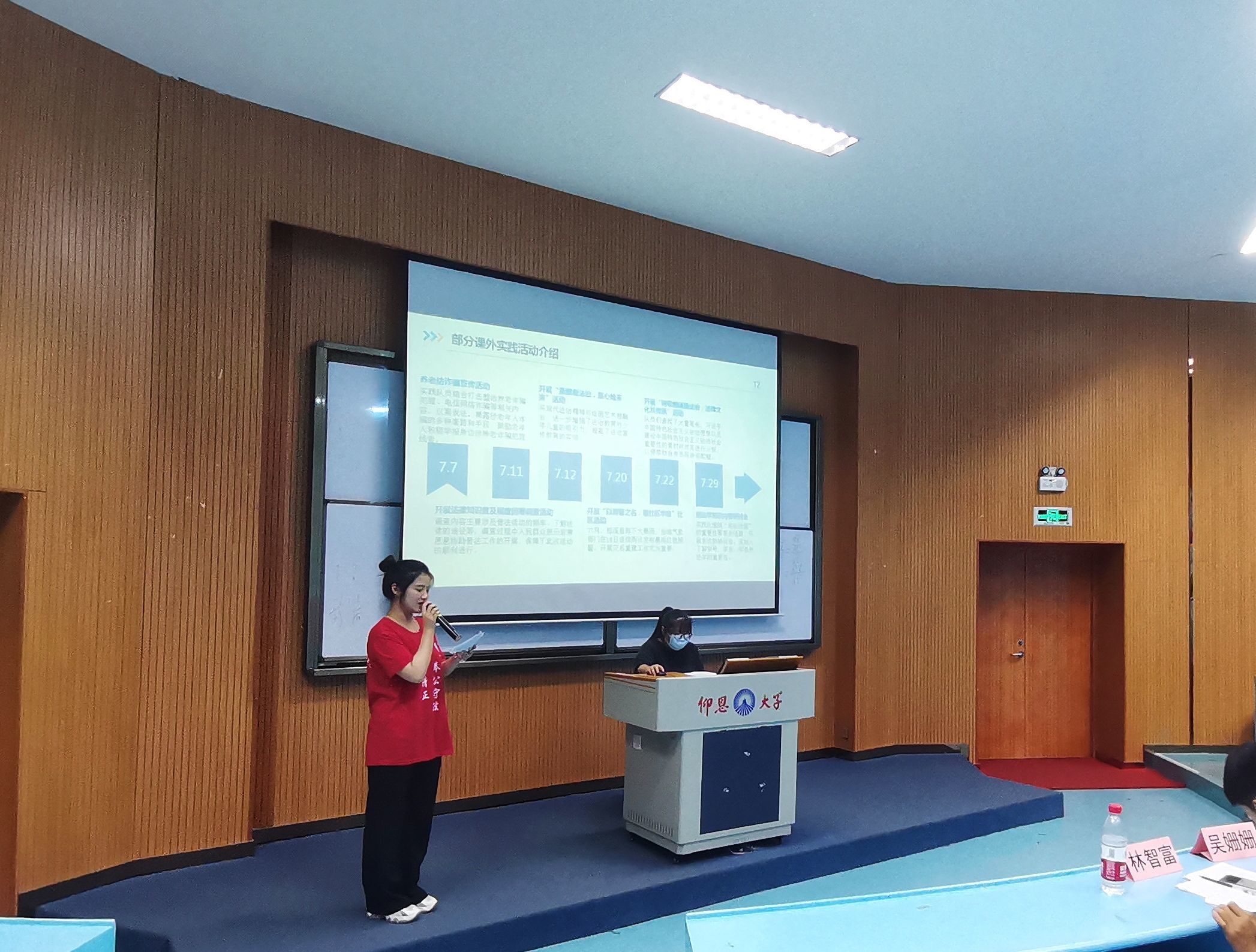 为进一步宣扬二十大精神,加强大学生素质建设。9月23日晚,77779193永利于永利官网第三教学区和昌教学楼海纳讲堂开展2021级暑期实践答辩活动。77779193永利党总支书记兼副院长杨勤、党总支副书记林媛、77779193永利辅导员吴姗姗,林智富、学务秘书汪明、77779193永利教师黄文伟到场观看并担任评委。77779193永利2021级部分学生参加此次活动。 活动现场,各实践队伍展开激烈的角逐,通过以PPT汇报形式结合现场表演、成果展示等方面来充分展现出实践队暑期实践成果。实践队汇报人分别从实践背景及意义、实践过程、实践特色、实践成果、总结思考等方面讲解各自实践活动,展示出精彩实践经历,分享了团队在实践过程中的收获与感悟。在激烈角逐后,“保护河流生态普法队”荣获第一名,“弘民法沧澜”暑期实践队荣获第二名,“刺桐行:勾画党史画卷”暑期实践队荣获第三名。
