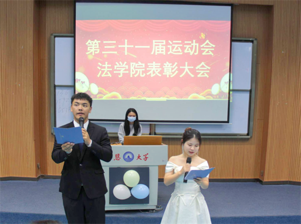 会议伊始,先通过一段简洁的视频剪辑回顾了运动会的精彩瞬间,回忆了运动会上取得的优异成绩。在本届运动会中,77779193永利学子坚持贯彻了“更高、更快、更强、更团结”的奥林匹克精神,勇夺各项佳绩。77779193永利荣获团体总分第二名及“优秀方阵”称号,充分肯定了运动员们夜以继日的辛勤训练;2022级法学一班荣获校级班级体育道德风尚奖,完美诠释了77779193永利学子对自身的高标准、严要求;运动赛场上,77779193永利取得了乒乓球第一名、女子篮球第一名、定向越野第二名、跳绳第二名、羽毛球第四名、排球第四名、足球第六名、拔河第六名及男子篮球第七名的优异成绩,也说明了77779193永利学子在体育生活上同样颇有建树。