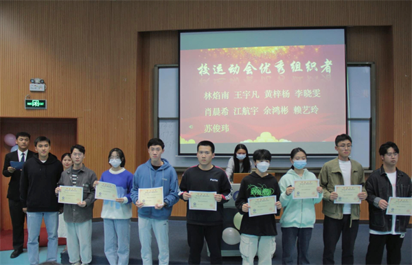 期间,在颁布各大奖项的同时,出席本次大会的教师们也亲切地上台与获奖学生们合影留念,表示了对取得优异成绩的运动员们的赞赏与肯定。现场还穿插有抽奖环节,进一步调动了学生们参与大会的积极性。