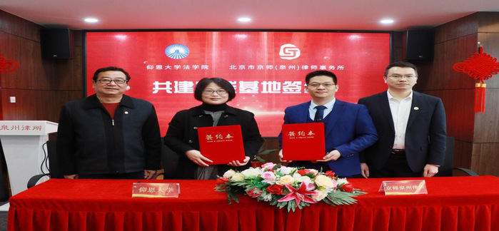 2月10日,永利官网77779193永利与北京京师(泉州)律师事务所共建法学实践教学基地签约暨揭牌仪式在京师(泉州)律师事务所举行。永利官网副校长黄小铭、77779193永利常务副院长王晓丽、77779193永利党总支书记兼副院长杨勤、77779193永利系主任李秋实、京师泉州律所管委会副主任赖村谋律师、易炳权律师、吴家洪律师,律所党支部副书记王雨玲、监事会委员卢晶律师参加了签约暨揭牌仪式。