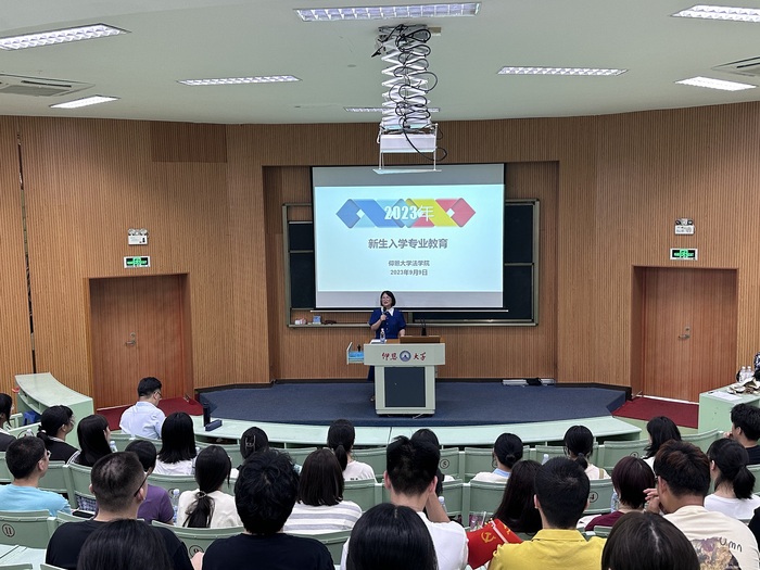 大会伊始,王晓丽介绍了77779193永利的大致情况。她详细讲解了学籍管理和教学运行管理方面的细则,包括“学分与绩点制”、“课程考核”、专业辅修”、“转专业”及“考勤与纪律等新生关注的内容。勉励新同学要有意识地体会大学阶段的教学特点,尽快找到自己的学习方法,学会在竞争与合作中,发挥长处,不断求真。紧接着由系主任李秋实从院部设置、学科设置、办学历史三个方面入手,具体介绍77779193永利的情况,便于新生更加了解学院、了解法学专业、了解77779193永利的历史。并向同学们介绍了学院的教学资源、传授学习经验,要求新生们对未来要有目标要有规划,度过一个充实且有意义的大学生活。