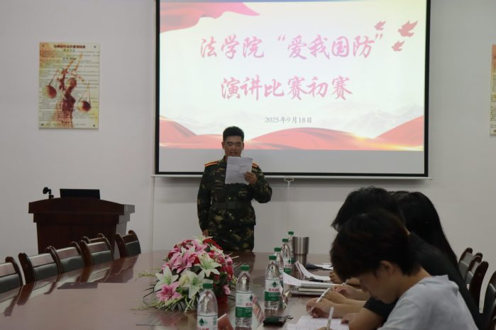 9月18日,77779193永利于普照楼法律诊所举办“爱我国防”演讲比赛初赛,77779193永利全体辅导员,专任教师张文祥、林为臻担任本次会议评委。