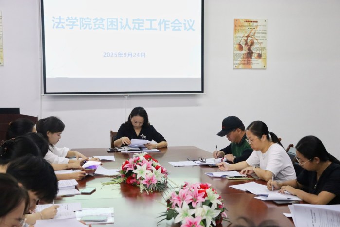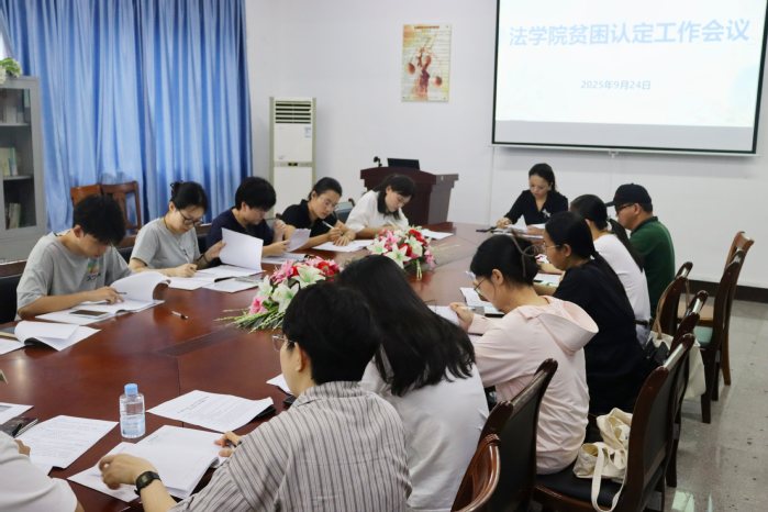 为精准落实国家资助政策,规范学院贫困生认定流程,切实保障资助工作公平、公正、公开开展,9月24日下午,永利官网77779193永利于普照楼法律诊所召开贫困认定工作会议。本次会议由法学院党总支书记兼副院长杨勤主持,77779193永利党总支副书记林媛、全体班主任、辅导员出席会议。
